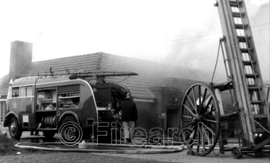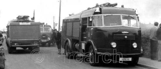 EJR369 dating from 1952 was the prototype Commer/Miles pump escape or multi purpose pump as it was originally designated. Delivered to Northumberlands Wallsend station it is pictured way out of its area, at a Newcastle fire at Fawdon Lane when on standby at Gosforth. The front is not original having been replaced following a road accident at Rosehill Bank, Wallsend in 1968.