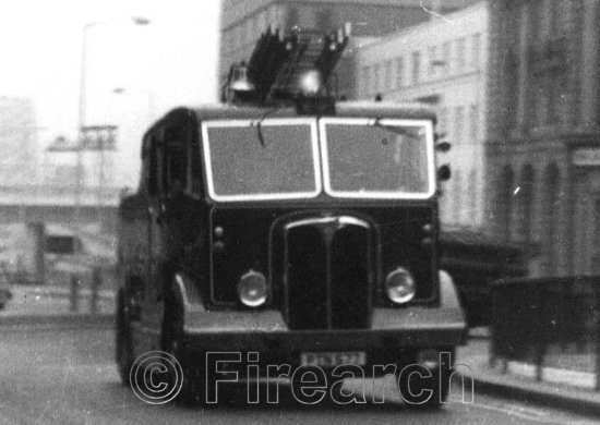 PTN677, the first appliance to be ordered by Newcastle & Gateshead Joint Fire Service was one of three AEC Regent appliances to see service with the brigade. This one, based at Gateshead storms up Pilgrim Street in 1968 on its way to standby at the headquarters station.