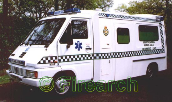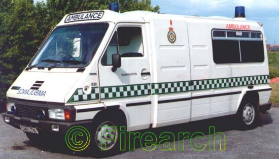 C141LTN This Renault T35 ambulance dating from 1986 was one of the first batches to be delivered to Northumbria. These vehicles featured bodywork by Steedrive and had fuel injection petrol engines later changed to turbocharged engines. They were the first ambulances for many years to feature a solid partition between the cab and the saloon. They formed the mainstay of the fleet until the Chevrolets.The last A&E Renault being delivered in 1992.