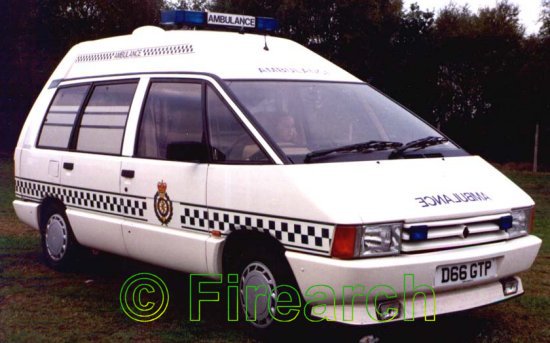 D66GTP a 1987 Renault Espace ambulance was acquired by Northumbria direct from the Harrogate Ambex exhibition. It was acquired for long distance patient transfers and later passed to the services Communicare division before being sold to the St. John’s organisation.