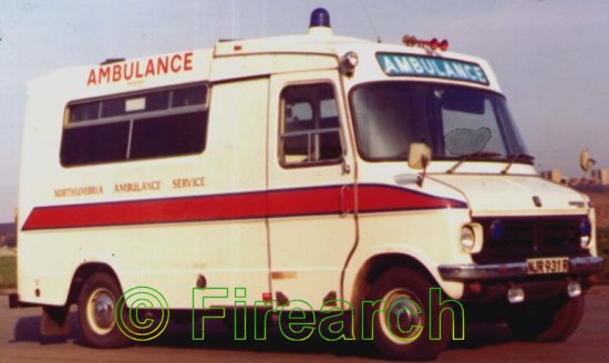 From 1976 until the delivery of the Renaults in 1986 almost the entire fleet of Northumbria A.S. consisted of Hanlon ‘Hi-Line’ ambulances on both Bedford CF and Ford Transit chassis. Noel Hanlon of Ireland was the first manufacturer to dress up the vehicles with the red and blue reflective side striping and they were a common sight in almost every part of the country. NJR931R featured here was the third such Northumbria example.